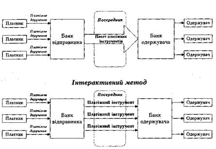 Рис.4. Схема проходження платежів при пакетному та інтерактивному методах обробки