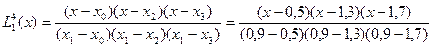 Одержали багаточлен третього ступеня. Якщо потрібно знайти значення функції, якого немає у таблиці (наприклад х = 0,2), те підставивши у багаточлен замість х значення 0,2, отримаємо функцію y = f (0,2). Якщо тільки одноразове потрібно знайти значення y = f (х), те багаточлен Лагранжа будувати не потрібно. У формули коефіцієнтів Лагранжа замість х треба підставити число 0,2 або якесь інакше, і всі коефіцієнти перетворяться у число, тоді за формулами Лагранжа знайдемо відповідне значення функції.