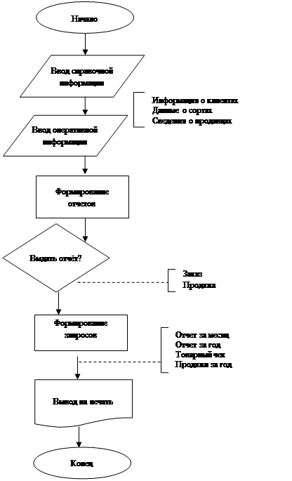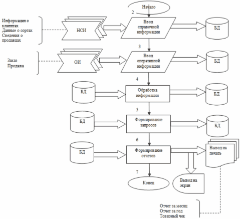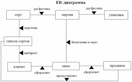 Продавец предоставляет список сортов, которые можно приобрести. Покупатель может выбрать сорт, отвечающий тем или иным характеристикам. Выбрав нужный сорт, клиент делает заказ на определенное количество упаковок выбранного сорта, при этом заказ может быть оплачен не сразу. При оплате оформляется продажа и выполняется выдача товара.