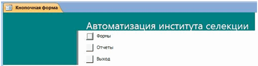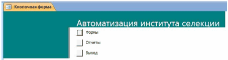 Выход из БД «Автоматизация института селекции» осуществляется при помощи кнопки «Выход» главной кнопочной формы БД.