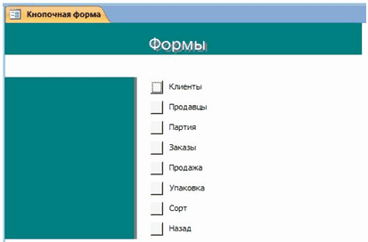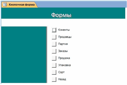 Формы предназначены для быстрого и удобного ввода информации в базу данных. При нажатии на кнопку «Формы» откроется экранная форма которая содержит следующие элементы: