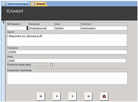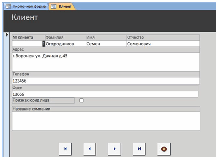 Выбрав пункт меню «Клиенты» отроется форма для просмотра и ввода информации о Клиентах.
