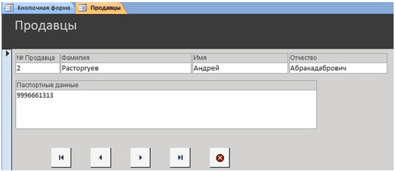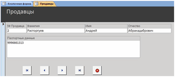 Выбрав пункт меню «Продавцы» отроется форма для просмотра и ввода информации о продавцах.