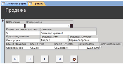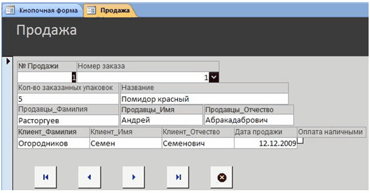Выбрав пункт меню «Продажа» отроется форма для ввода информации о продаже.