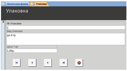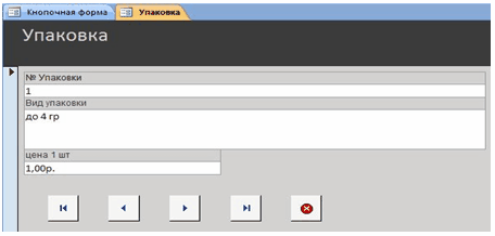 Выбрав пункт меню «Упаковка» отроется форма для ввода информации об упаковке.