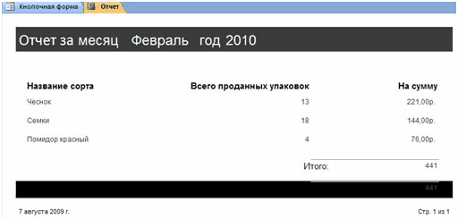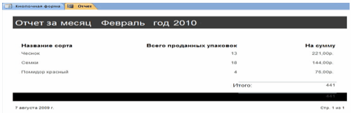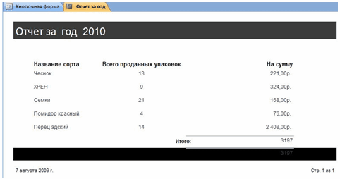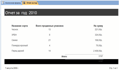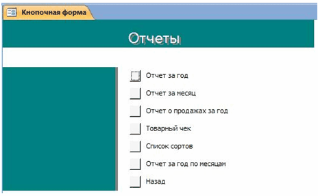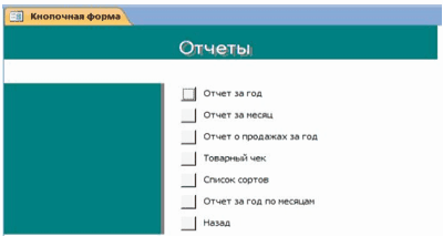 При нажатии на кнопку «Отчёты» откроется экранная форма которая содержит следующие элементы: