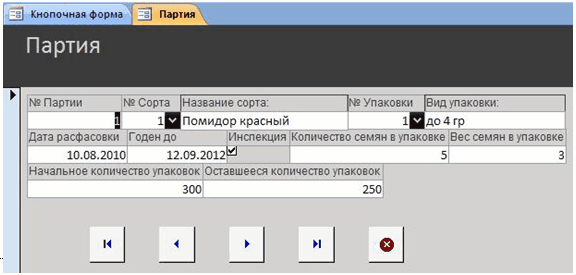 Выбрав пункт меню «Партия» отроется форма для ввода информации о партии.