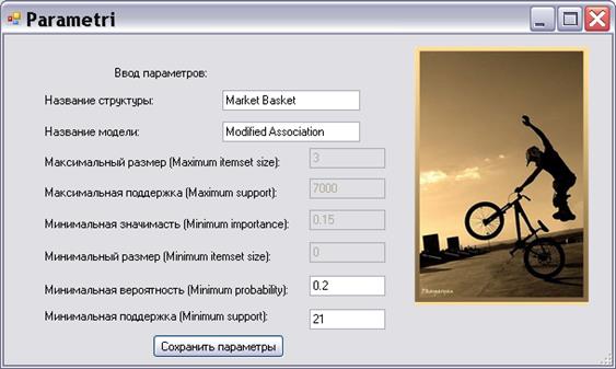 Для роботи з моделлю було створено інформаційне сховище, розроблені процедури перевантаження даних з транзакційної бази даних в інформаційне сховище. Інформаційне сховище можна використовувати не лише для інтелектуального аналізу, але і для подальшого OLAP-аналізу. Розроблений призначений для користувача інтерфейс, що дозволяє легко створювати, змінювати модель і міняти параметри.