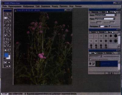 Остановимся на программе ADOBE PHOTOSHOP 5.0, которая удобна как адекватный пример редактора растровых изображений и вполне может служить объектом отдельного обзора. Введя растр, т.е. отсканированную фотографию или рисунок, вы имеете возможность модифицировать его по собственному желанию, добавляя детали или накладывая другой объект, изменяя контрастность, яркость, масштаб изображения, создавая эффекты освещения, наложения теней или текстурирования. И это далеко не полный перечень возможностей программ, подобных PHOTO-SHOP. Дополнительным преимуществом данного редактора является его совместимость с другими программами для WINDOWS и возможность экспорта и импорта документов, созданных в других, как графических, так и текстовых редакторах. Функция меню «SAVE COPY» («Сохранить копию») позволяет создавать файлы с расширениями '.BMP, *.JPG, *.TIF и т.д. Это удобно при одновременной работе с разными редакторами и позволяет регулировать размер файла. Функция «Кисть событий» (аналогична «UNDO») помогает исправлять допущенные ошибки, возвращаясь на несколько шагов назад.