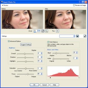 Редактор содержит два автоматических режима улучшения качества фотографий. Инструмент One Step Photo Fix производит оптимизацию снимка одним щелчком мыши. Подобный механизм может пригодиться во время пакетной обработки материала, когда физически нельзя уследить за тонкостями корректировки изображений. Другой инструмент имеет название Smart Photo Fix и позволяет улучшить качество снимка путем управления несколькими параметрами.