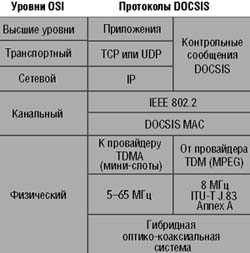Рис. 4. Стек протоколов DOCSIS в сравнении с моделью OSI.