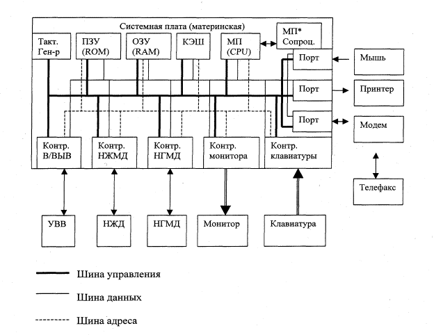 Практически все универсальные ЭВМ отражают классическую неймановскую архитектуру, представленную на схеме. Эта схема во многом характерна как для микроЭВМ, так и для мини ЭВМ и ЭВМ общего назначения.