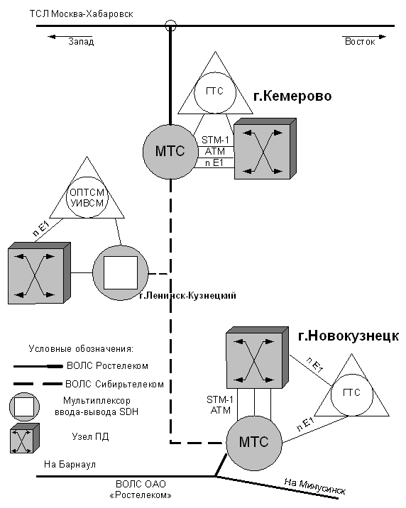 В сети применена технология асинхронного мультиплексирования, которая позволяет передавать данные, обрабатывать и транспортировать все протоколы взаимодействия любых сетей. В неё без проблем "укладываются" Интернет-протокол, протоколы локальных и корпоративных сетей, Frame relay, Х-25 и прочие. До настоящего времени в Кузбассе подобной сети не было. Смонтировано оборудование ведущих мировых производителей Cisco Systems, RAD, Schmid Telecom, Taicom, а также российского производителя - фирмы Натекс. Это самые современные технологии и оборудование, позволяющие создавать мультисервисную сеть [1].