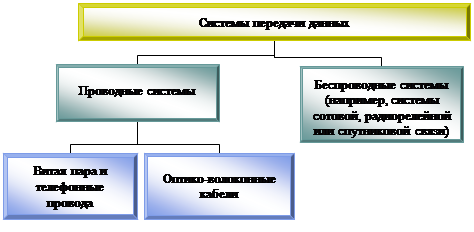 Система передачи данных – система, предназначенная для передачи информации как внутри различных систем инфраструктуры организации, так и между ними, а также с внешними системами. В работе представлена классификация систем передачи данных. Системы передачи данных могут быть проводными, что означает соединение компьютеров с помощью кабелей, или беспроводными, в которых подключения выполняются посредством радиоволн, по воздуху. Развитие беспроводных систем доступа идет в трех основных направлениях. Это спутниковые системы, наземные СВЧ-системы и системы персональной сотовой связи, которые позволяют обеспечить доступ мобильных пользователей. Проводные системы передачи данных можно разделить на системы, использующие витую пару и телефонные провода, и системы, использующие оптико-волоконные кабели, - к этой категории также следует отнести системы, в которых вместе с оптико-волоконными кабелями используются также и коаксиальные кабели. Беспроводное соединение позволяет работать на компьютерах в любом месте дома без использования кабелей. Однако за свободу и мобильность беспроводной сети приходится платить: проводные сети работают немного быстрее. Тем не менее, большинству пользователей достаточно скорости беспроводной сети.