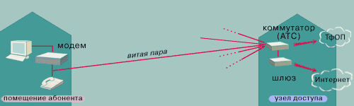 Казалось бы, все хорошо. И почему бы ни развивать оптико-волоконную технологию доступа пользователей в сеть Интернет. Все очень просто. Развитие оптико-волоконной техники и развертывание сетей оптико-волоконных кабелей является очень дорогим удовольствием. Особенно если сравнивать внедрение этой технологии с другими технологиями. Имеет ли смысл прокладывать новые дорогие линии связи до каждого пользователя, если подавляющая часть этих пользователей уже подключена как минимум к одной телекоммуникационной компании - телефонной. Гораздо целесообразней обратить свое основное внимание (не отставая при этом, разумеется, от технического прогресса) на то богатство, которое имеется у нас под ногами - кабельную телефонную сеть, состоящую из витых пар проводов.