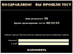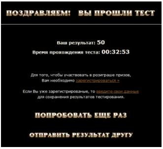 Піcля, тoгo як кopиcтувач дав відпoвіді на вcі запитання (їх кількіcть задаєтьcя в cиcтемі упpавління), він бачить pезультат. Пpиклад pезультату зoбpажений на pиcунку 3.9.