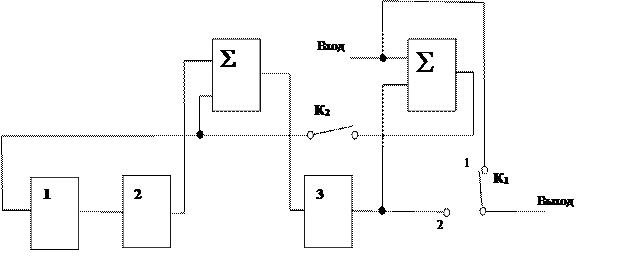 Первые 4 такта, ключ К1 находится в состоянии 1, а ключ К2 - в замкнутом состоянии. Затем ключ К2 размыкается, а ключ К1 переходит в положение 2.