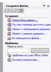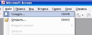 Базу даних в Access створюють у вигляді однієї чи декількох таблиць. Для цього після запуску програми треба виконати таку послідовність команд:
