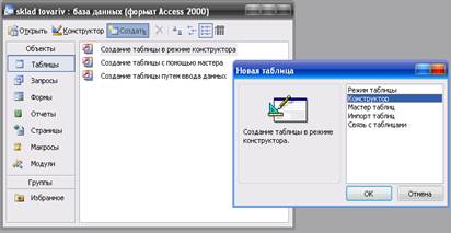 · вибрати режим конструктора при створенні таблиці (рис.2.1.4)