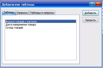 · додати таблиці по яких потрібно зробити запит (рис. 2.2.2)