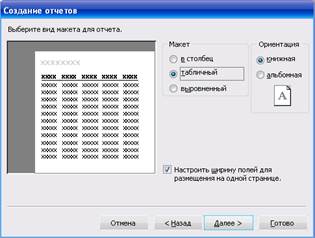 · вибрати макет для звіту та натиснути далі (рис. 2.4.5).