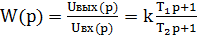 Wр (P)=k/P(T1 P+1)( T2 P+1), (T1 > T2 ).