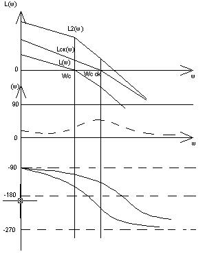 Частота среза ωск скорректированной системы увеличилась по сравнению с частотой среза ωс нескорректированной системы также в