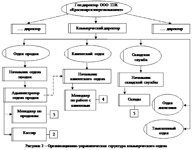 1.2.1 Основные задачи и функции коммерческого отдела компании ООО ТПК "Краноярскэнергокомплект". Структура организации
