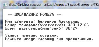 · Вывести всю картотеку – производит вывод картотеки по номерам телефонов в порядке возрастания.