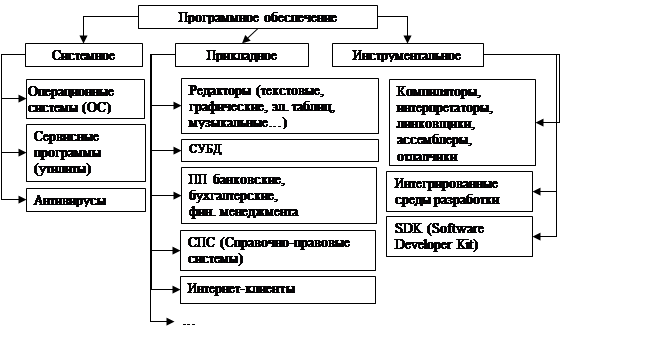По назначению программное обеспечение разделяется на системное, прикладное и инструментальное.