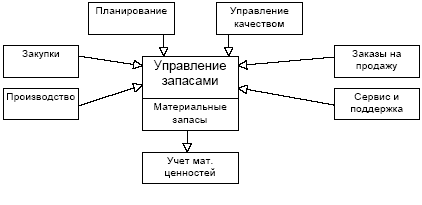 При решении задач управления запасами - производится обработка и корректировка всей информации о приходе, движении и расходе сырья и материалов, промежуточной продукции и готовых изделий; учет запасов по складским ячейкам, выбор индивидуальных стратегий контроля, пополнения и списания запасов по каждой позиции номенклатуры сырья и материалов. Учитывается нормативная и текущая фактическая стоимость запасов, а также отслеживается прохождение отдельных партий запасов и серий изготавливаемой продукции.