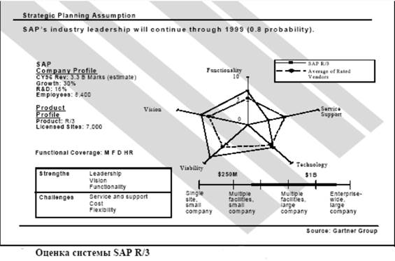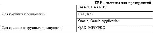 В настоящее время не существует КИС российского происхождения, полностью отвечающих требованиям модели ERP. Поэтому для рассмотрения возможных вариантов автоматизации предприятия были взяты западные КИС, отвечающие требованиям ERP-модели и имеющие наилучшие позиции на российском и мировом рынках ERP-систем.