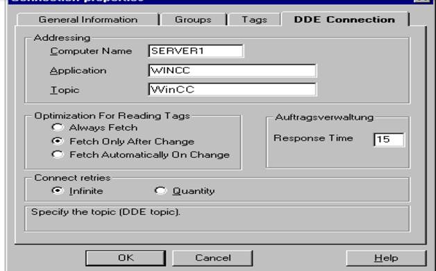 На рисунке представлена вкладка "DDE Connection [Соединение DDE] ".