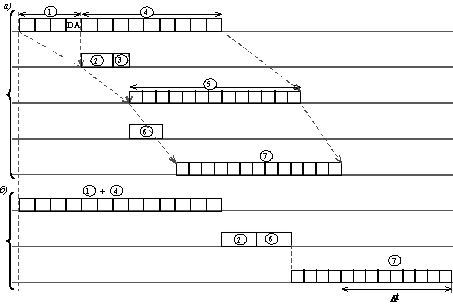 По сравнению с режимом полной буферизации кадра, также приведенном на рисунке 2.11, экономия от конвейеризации получается ощутимой.