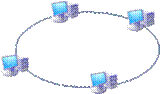 Топология «кольцо». Все компьютеры соединяются друг с другом в кольцо. Здесь пользователи сети равноправны. Информация по сети всегда передается в одном направлении. Кольцевая сеть требует специальных повторителей, которые, приняв информацию, передают ее дальше как бы по эстафете; копируют в свою память (буфер), если информация предназначается им; изменяют некоторые служебные разряды, если это им разрешено. Информацию из кольца удаляет тот узел, который ее послал.