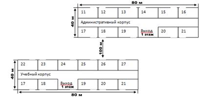 План расположения учебного и административного корпусов относительно друг друга