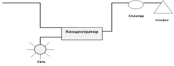 За основу берем телефон, стоящий у секретаря-референта. Обеспечение доступом в интернет в схематичном образе будет выглядеть так: