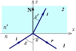 . Будем считать, что граница представляет собой плоскость (так как в пределах бесконечно малой области любую поверхность можно считать плоской). Будем также считать, что сама граница раздела свет не поглощает.