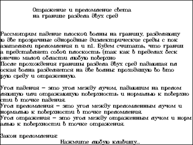 ChangeN(flag: integer): real – возвращает новое значение показателя преломления. Если flag равен 1 – задается для первой среды, если 2 – для второй.