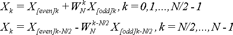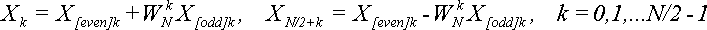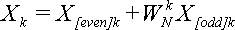 Сравним с формулами для X[even]k и X[odd]k при k = 0,1,…,N/2-1: