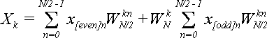 Утверждается, что элементы последовательности {X} можно выразить через элементы последовательностей {X[even] } и {X[odd] } по формуле: