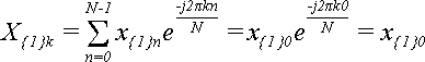 Поскольку в данном случае k может быть равно только 0, то X{1}0 = x{1}0 , то есть, ДПФ над одним числом дает это же самое число.