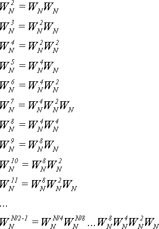 Еще можно заметить, что в сумме (40) в первом множителе поворачивающий коэффициент всегда равен 1, благодаря чему мы экономим несколько умножений.