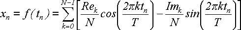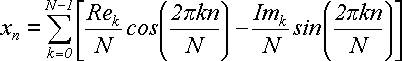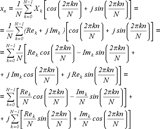 Дана конечная последовательность X0 , X1 , X2 ,...,XN-1 (в общем случае комплексных). Обратное дискретное преобразование Фурье (ДПФ) заключается в поиске другой последовательности x0 , x1 , x2 ,...,xN-1 элементы которой вычисляются по формуле: