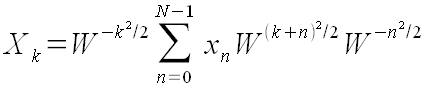 Прямое преобразование Фурье можно выразить через поворачивающие множители. В результате формула (1) примет вид: