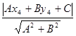 Расстояние от точки, заданной координатами (х4 , у4 ), до прямой, заданной уравнением (1.1), может быть определено так [2]: