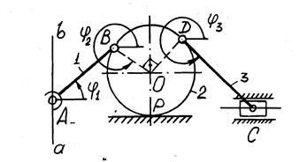 На данном механизме (рисунок 1 (Кинематическая схема)) имеется одна неподвижная опора, на которой находится подвижный барабан, к нему на шарнирах прикреплены стержни [5]. Один стержень связан шарниром с ползуном и движется вдоль горизонтальной направляющей [5]. Другой стержень шарниром соединен с неподвижной осью и движется в вертикальном направлении [5].