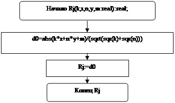 При решении задач часто приходится выполнять многократные вычисления не только по одним и тем же формулам, но и по одним и тем же алгоритмам, в которых изменяются значения только некоторых переменных. В этом случае повторяющиеся части целесообразно оформлять в виде отдельных модулей - подпрограмм, дополняющих основную программу. Использование подпрограмм не только освобождает от переписывания повторяющихся фрагментов программного текста, но и улучшает наглядность и структуру программы, позволяет перейти к модульному программированию и оптимизировать программу, создать личную библиотеку программных модулей. В Delphi подпрограммы оформляют в виде процедур и функций, которые входят в основную программу путем соответствующего описания. Для решения задачи была использована подпрограмма, оформленная в виде функции пользователя, рисунок 4 (Блок-схема подпрограммы задачи 1).