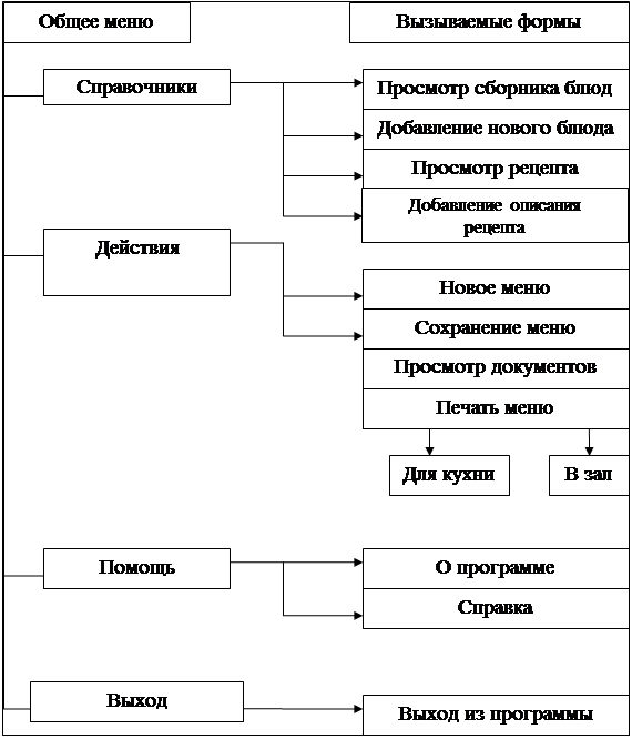 Рис 2.7 Структурная схема меню главной формы.