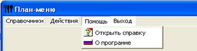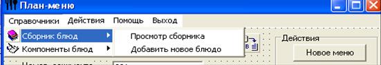 Главная форма системы – «План - меню» содержит меню для доступа ко всем функциям программы, а также компонент DBGrid для отображения данных об описании меню.
